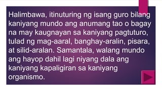 Bilang Indibidwal - Tumutukoy sa pagiging hiwalay nya sa ibang tao. Unang yugto ng pagka-sino ng tao ang tao bilang indibidwal -tumutukoy sa pagiging hiwalay nya sa ibang tao simula pa noong nasa sinapupunan pa sya at nag ookupa ng espasyo sa iba pang sanggol. Tatag ng wikang filipino lakas ng pagka pilipino Maraming tanong sa isipan ng isang tao mga tanong na nakakaapekto sa bawat galaw kilos at desisyon nito.