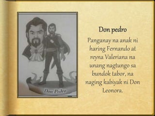 Isa siyang magiting na mandirigma. Mayroon siyang tatlong anak si Don Pedro Don Diego at si Don Juan. Siya ang kabiyak ng Haring si Don.