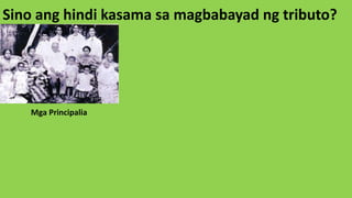 17 Sino ang inatasang maningil ng tributo o buwis sa mga Pilipino A Mga dayuhang from NURSNG KSNF at University of Northern Philippines Ilocos Sur. Sa ilalim ng NLRA. Ang mga encomendero ay binigyan ng karapatang maningil ng buwis na 8 reales sa kanilang nasasakupang may 19 hanggang 60 taong gulang na.