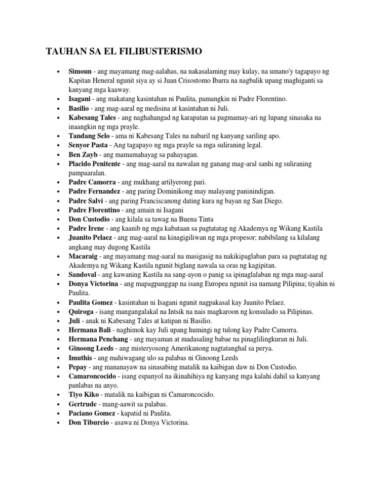 Sa nobelang ito ni Rizal ipinakita niya ang ibat ibang kaanyuan ng mga tao ayon sa kanilang mga kasarian. SALVADOR LPT f Bago pa man bumalik sa sariling bayan si Jose Rizal noong Oktubre 1887 marami nang kasawiang dinanas ang kanyang kamag-anakan at. Learning Integration Specialist El Filibusterismo - Mga Tauhan 1.