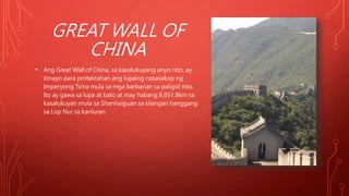 Sino ang nagpatayo ng great wall of china. Simbolo ito ngayon ng China 19. Sino ang nagtatag nang great wall of china.