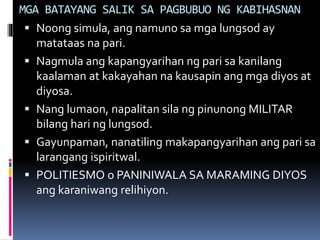 Paano naiiba ang sistemang panrelihiyong ng Kabihasnang Shang sa Kabihasnang Indus at Sumer. Papel ng hari 18. Emperor yong ji 16.