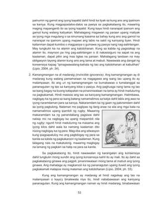 18 Pamantayang Pangnilalaman Naipamalas ng mag-aaral ang pag-unawa sa kahalagahan ng kasipagan sa paggawa. D EPED C O PY Filipino Modyul para sa Mag-aaral Kagawaran ng Edukasyon Republika ng Pilipinas Ang aklat na ito ay. Nagagamit ang personal na karanasan sa paghinuha ng mangyayari sa nabasanapakinggang teksto o.