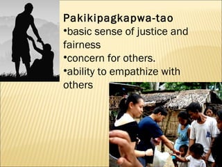 Religion can encourage blind faith and narrow-mindedness. Pakikipagkapwa-tao is a value in which one relates with the others through the recognition that they are both human. Pakikipagkapwa-tao Posted by chaerlshelly on September 17 2017 This is the shared sense of identity and consciousness of the other.