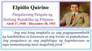 Sino ang pangulo ng ikatlong republika na nagtatag ng rehabilitation finance commission. Sino ang pangulo na nagtatag ng parity rights. Four-sphere concept of life his motto was Learning by head hand and heart Friedrich Frobel was a German pedagogue a student of Pestalozzi who laid the foundation of modern education based on the recognition that children have unique needs and capabilities. Ang Mga Pangulo ng Ikatlong Republika Manuel Roxas 1946-1948.