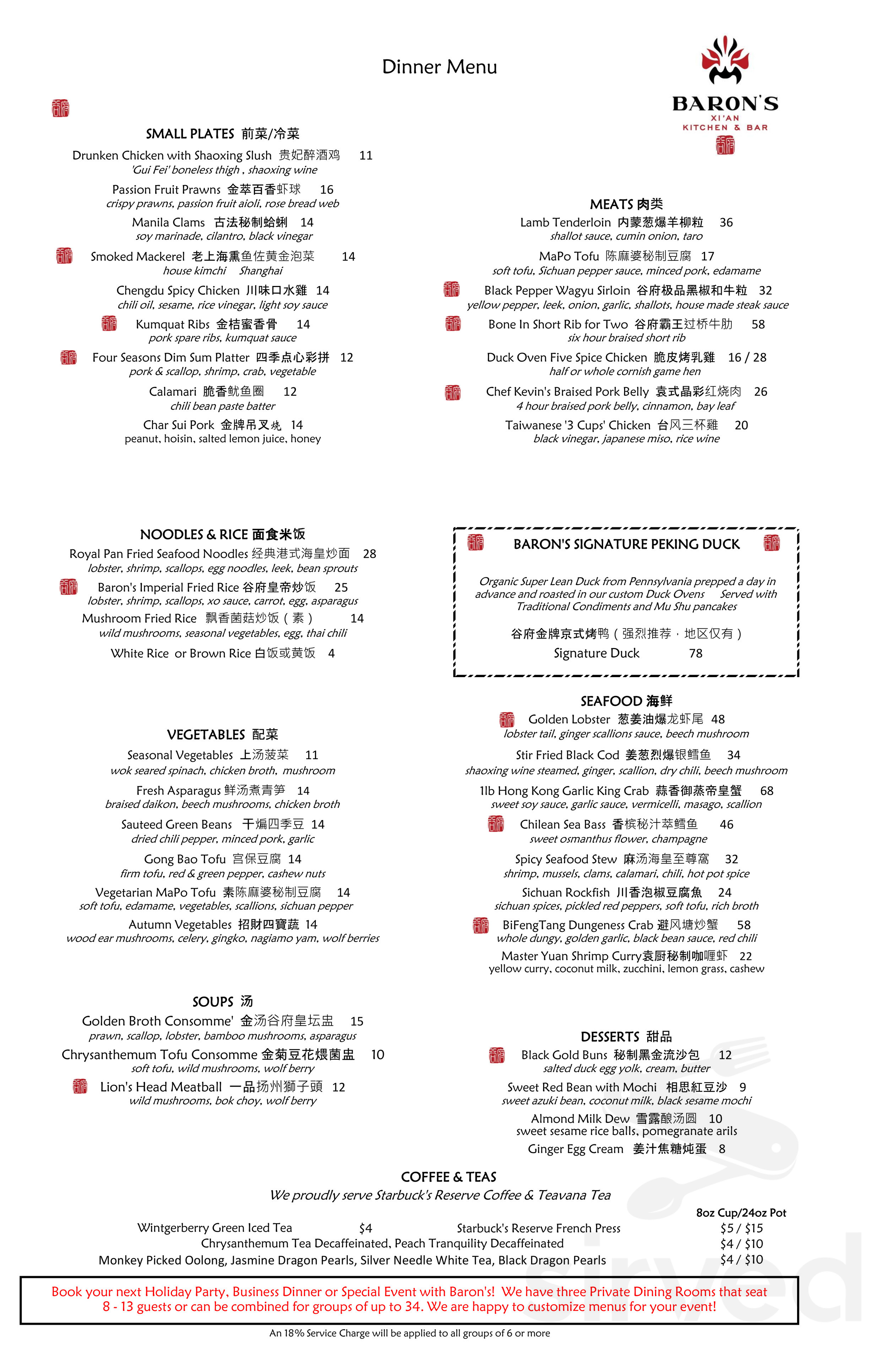 Chinese Asian Asian Fusion. Barons Sino Kitchen Bar is the first overseas project of Barony Hotels Resorts Worldwide. 20 off of all to-go orders from Barons Sino Kitchen Bar.