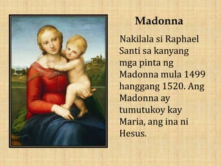 Sino si raphael santi. Ang kanyang ama ay ang hukuman pintor ng pangalawang kaya siya lumaki kasama ang kanyang ama sa pag-aaral pagpipinta. Want this question answered.